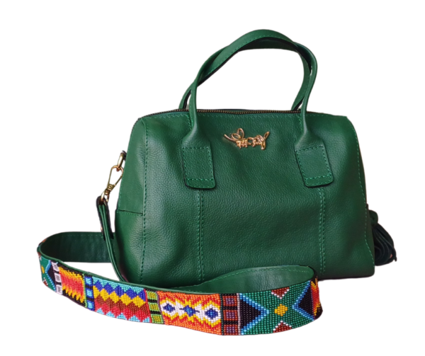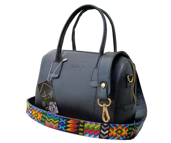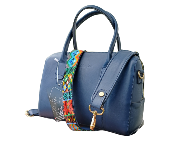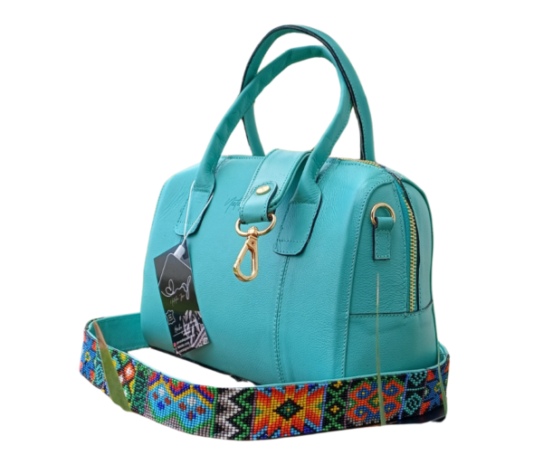 Su asa desmontable, adornada con chaquira tejida a mano por talentosos artesanos mexicanos, convierte este bolso en una pieza auténtica y versátil.